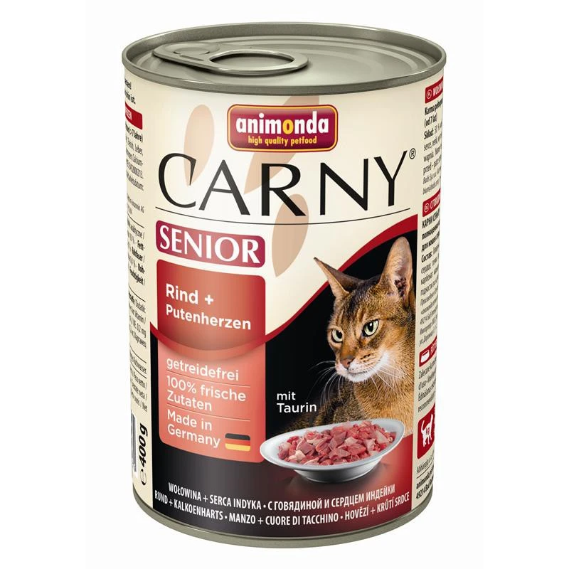 Animonda Cat Carny Senior ist ein gesundes und leckeres Futter, das Ihrer Katze sicherlich schmecken wird. Bei der Herstellung wird streng darauf geachtet, dass nur Zutaten enthalten sind, die Ihre Katze auch wirklich für ein gesundes und langes Leben braucht. Animonda Cat Carny Senior ist ein Nassfutter das selbst dem größten Feinschmecker das Wasser im Mund zusammenlaufen lässt. Es enthält nur Zutaten von höchsten biologischem Wert. Das leckere Futter ist genau auf die Bedürfnisse der Katze abgestimmt und enthält wertvolle Proteine. Die ausgewählten Zutaten sind schonend Zubereitet und nach strengen Vorschriften ausgewählt. Dank der ausgewogenen Mischung erhält Ihre Katze alle nötigen Mineralstoffe und Vitamine, die Sie braucht um gesund zu bleiben. Das Fell wird kräftig bleiben, das Hautbild schön und nebenbei werden die Knochen auch mit wertvollen Mineralstoffen versorgt. Probieren Sie doch auch die anderen leckeren Variationen aus und gönnen Sie Ihrer Katze Abwechslung im Futternapf. Natürlich können Sie das Produkt auch sehr gut mit anderen Futtermitteln kombinieren. Testen Sie einfach was Ihrer Katze schmeckt und wohl bekommt. Stellen Sie Ihr Tier immer langsam auf eine neue Futtersorte um. Bei empfindlichen Katzen kann es sonst zu schlimmen Verdauungsproblemen und Durchfällen kommen.