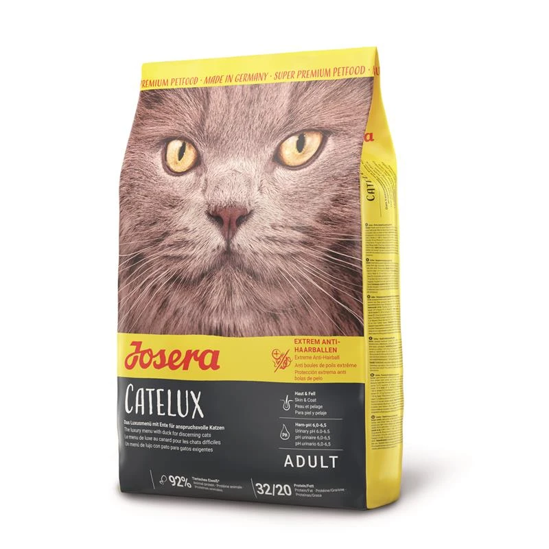 Josera Catelux ist ein gesundes und leckeres Futter, das Ihrer Katze sicherlich schmecken wird. Bei der Herstellung wird streng darauf geachtet, dass nur Zutaten enthalten sind, die Ihre Katze auch wirklich für ein gesundes und langes Leben braucht. Josera Catelux ist ein Futter das selbst dem größten Feinschmecker das Wasser im Mund zusammenlaufen lässt. Es enthält nur Zutaten von höchsten biologischem Wert. Das leckere Futter ist genau auf die Bedürfnisse der Katze abgestimmt und enthält wertvolle Proteine. Die ausgewählten Zutaten sind schonend zubereitet und nach strengen Vorschriften ausgewählt. Dank der ausgewogenen Mischung erhält Ihre Katze alle nötigen Mineralstoffe und Vitamine, die Sie braucht um gesund zu bleiben. Zudem ist es perfekt für Katzen die zu Haarballenbildung neigen. Das Fell wird kräftig bleiben, das Hautbild schön und nebenbei werden die Knochen auch mit wertvollen Mineralstoffen versorgt. Probieren Sie doch auch die anderen leckeren Variationen aus und gönnen Sie Ihrer Katze Abwechslung im Futternapf. Natürlich können Sie das Produkt auch sehr gut mit anderen Futtermitteln kombinieren. Testen Sie einfach was Ihrer Katze schmeckt und wohl bekommt. Stellen Sie Ihr Tier immer langsam auf eine neue Futtersorte um. Bei empfindlichen Katzen kann es sonst zu schlimmen Verdauungsproblemen und Durchfällen kommen.