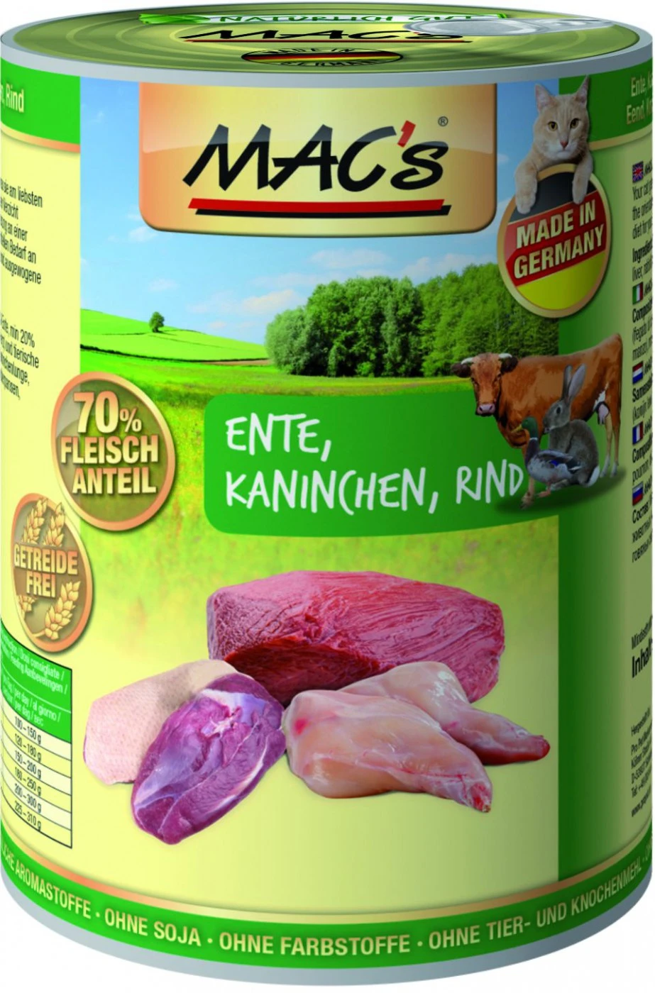 MACs Cat Ente, Kaninchen, Rind – Getreidefreie pure Fleischmahlzeit für ausgewachsene Katzen