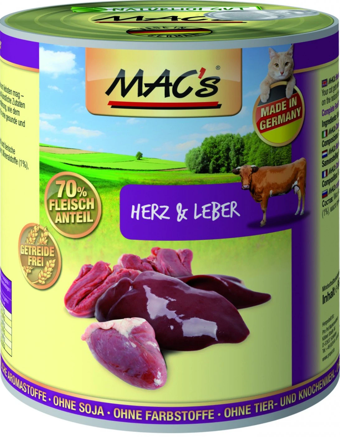 MACs Cat Herz & Leber – Getreidefreies Nassfutter mit hohem Anteil an Rindfleisch als Monoproteinquelle